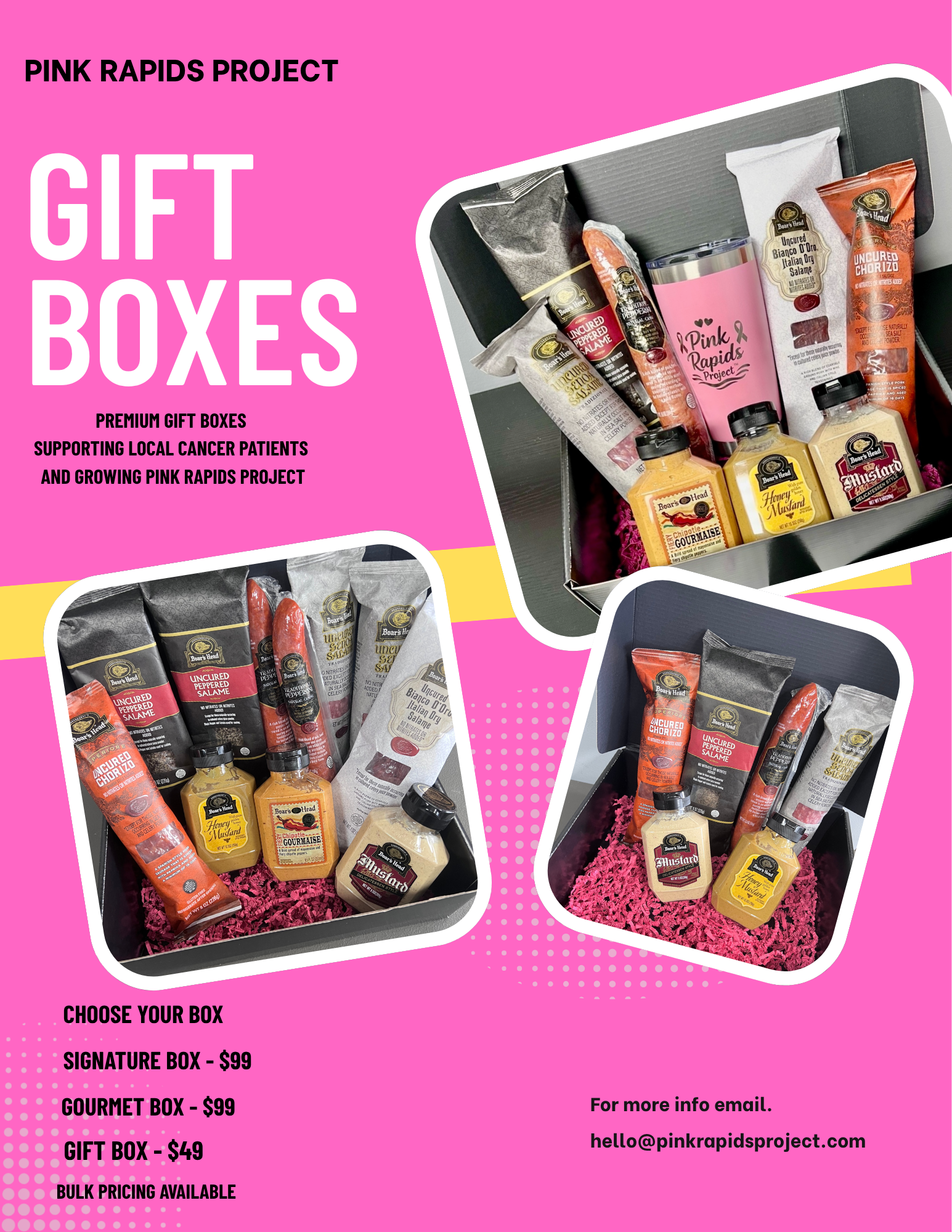 Premium gift boxes supporting local cancer patients and growing Pink Rapids Project.